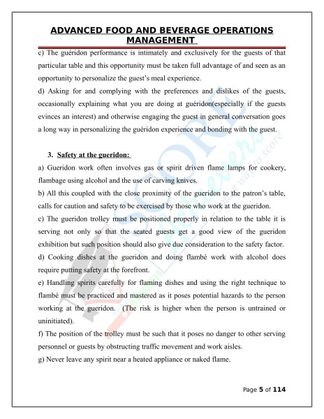 6.	Explain different equipment used on gueridon and list various trollies used in restaurants