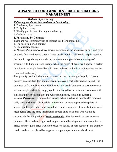 15.	List down the measures you will undertake whilst buying raw material for your kitchen